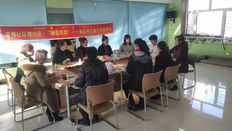 11月20日,幸福社区微公益·“赫哲风韵”鱼皮手工技艺培训项目在长安社区正式启动,邀请到鱼皮手工技艺讲师开展为期两天的鱼皮手工技艺培训活动。