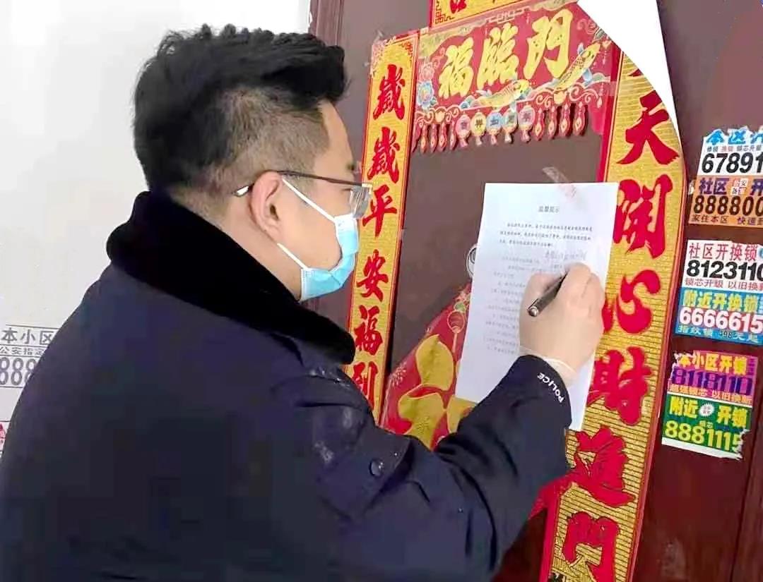 工作人员对辖区居民开展走访排查,对居民信息进行登记,建立辖区居民微信群,若有外来返乡人员可在群里报备登记。对家中无人的住户张贴告知单。