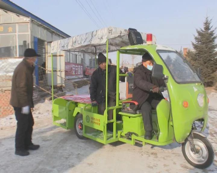 在村里的小路上,一辆绿色的电动三轮车显得格外醒目。原来啊,这是一辆由村里清洁车改造成的宣传车。车上配备了一个小音箱,变成了一个移动小广播。同时,车上还放着很多疫情防控宣传板,随时钉在醒目的位置,实现了固定岗和流动哨的“动静结合”。