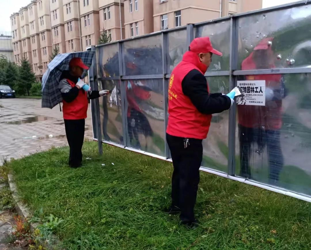 活动中,党员志愿者们手持小铲子、水桶、抹布等工具对小区墙面、公共设施等处粘贴的小广告进行全面清理,在不损坏建筑墙面的前提下,志愿者们发扬不怕苦、不怕脏、不怕累的精神,有的用手撕、有的用铲子铲、有的用抹布沾水擦拭、有的用除胶剂喷,对粘贴牢固的小广告尽全力清除。历经2个多小时将小广告彻底清理干净。