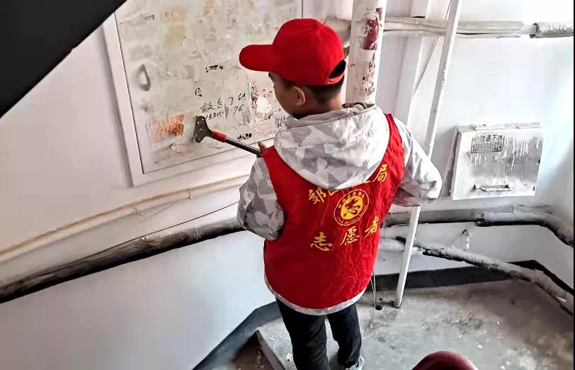 活动中,志愿者们身着“红马甲”,秉承文明实践、服务群众的理念,充分发挥不怕累、不怕脏的奉献精神,分工协作、相互配合,细心清洁楼道的垃圾、墙面的小广告等,做到不留死角,清洁一处、靓丽一处。