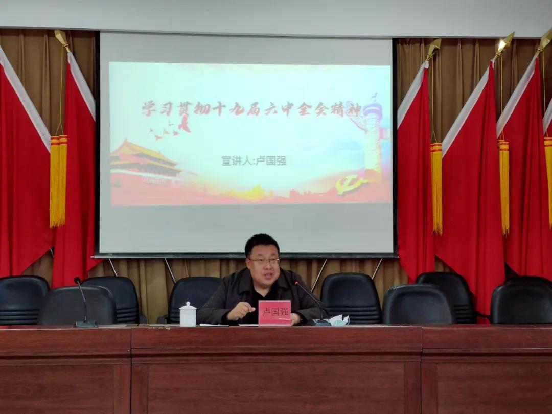 12月17日,区委副书记、政法委书记卢国强到敖其镇作党的十九届六中全会精神宣讲报告。敖其镇党政班子成员、部分党员干部、各村党组织负责人参加宣讲报告会。