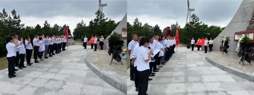 缅怀东北抗日联军丰功伟绩,体会铁马冰河的峥嵘岁月,耸立云端的纪念塔下,四丰镇全体党员干部面对鲜红的党旗,整齐划一、庄严肃立,郑重举起右拳,宣誓声铿锵有力,久久回荡在塔山上。