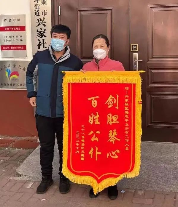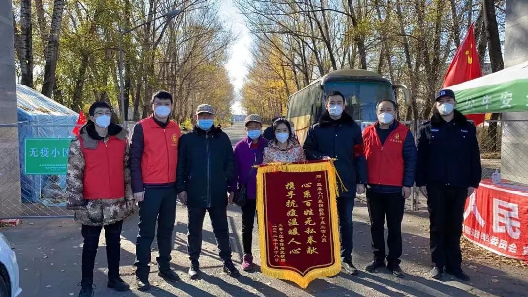 亚麻小区居民给卡点工作人员送锦旗,感谢疫情期间各工作人员心系百姓,认真负责,恪尽职守。