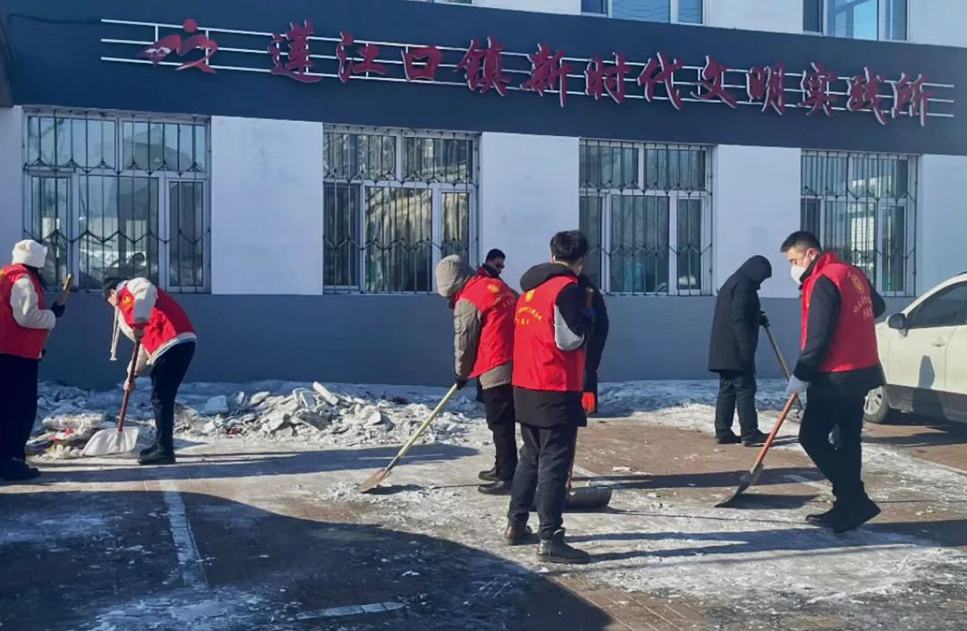 镇机关干部充分发挥带头作用,与志愿者们一起撸起袖子开展“大扫除”,大家对新时代文明实践所周边堆积的垃圾、鞭炮碎屑、积雪等进行了全面的清理。大家不畏严寒,干劲十足,充分发挥合力,让莲江口镇新时代文明实践所的环境焕然一新。同时,对电线杆、广告牌上的各类“垃圾小广告”进行了集中清理,为居民提供干净舒适的人居环境。