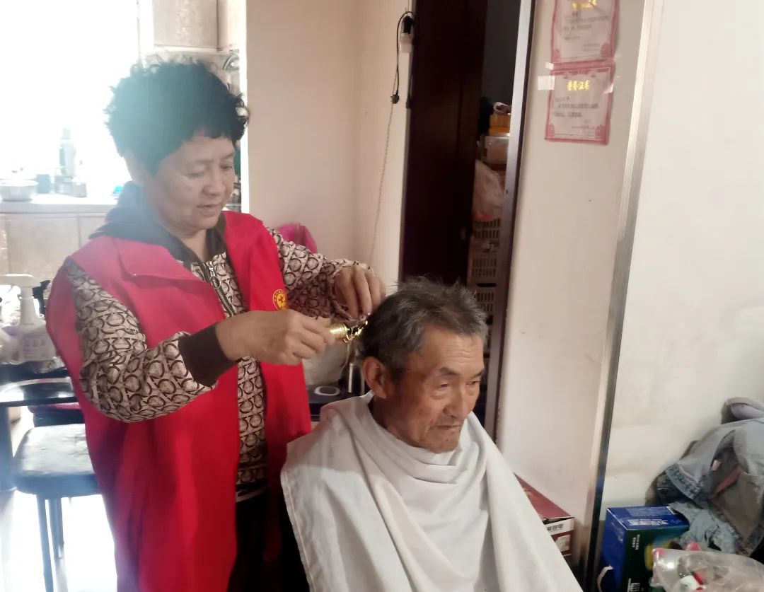 四丰镇新时代文明实践所组织开展为独居老人上门剪发志愿服务活动。经过志愿者们细心的修剪,老人们原本略显凌乱而长的头发变得干净、利索、清爽了起来。老人们表示,由于腿脚不便,不能时常出门理发,感谢志愿者能上门服务。