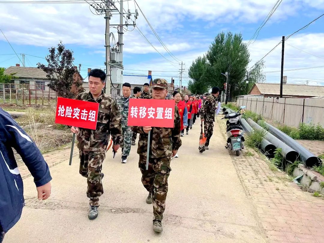 总指挥一声令下,转移安置组迅速行动,将受威胁群众进行安全转移并妥善安置;抗洪抢险突击组携带抢险工具,第一时间赶赴现场,转运土方、装沙袋、加固堤坝;医疗救护组在安置点为受灾群众进行血压测量、包扎救护等医疗救助;物资保障组为转移群众发放矿泉水、方便面、火腿肠等物资;安全保卫组对转移群众的房屋加强安全保卫,对危险区域设置警戒带;电力抢修组、通讯联络组协同配合,各个环节井然有序进行,达到预期效果。
