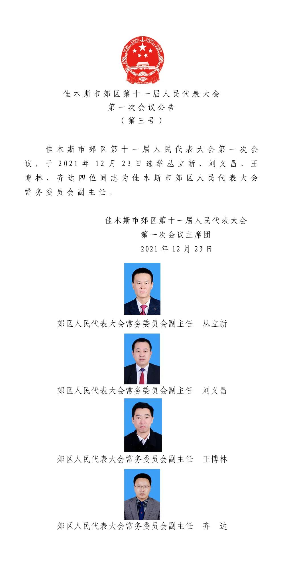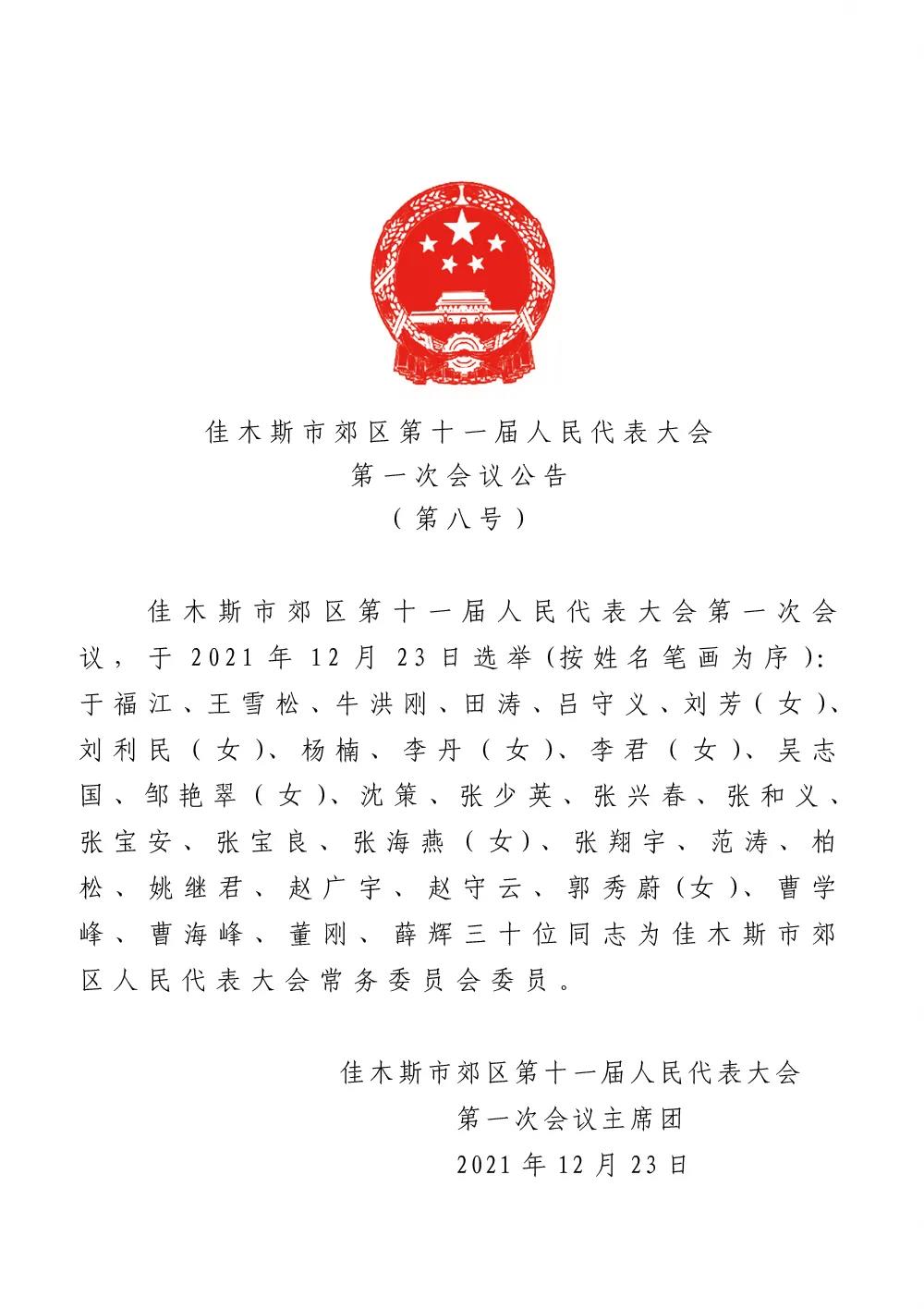 佳木斯市郊区第十一届人民代表大会第一次会议公告