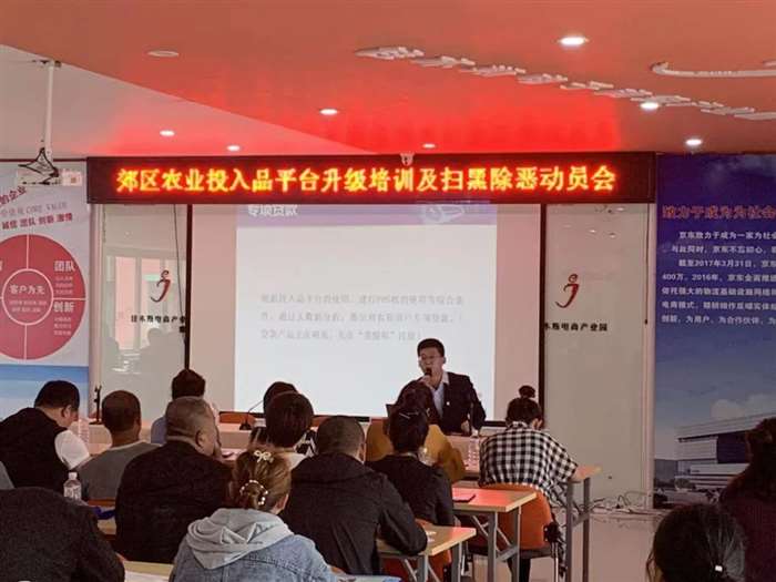 为加快推进郊区农产品质量追溯体系建设步伐,扫除农资市场黑恶势力,近日,郊区农业农村局召开农业投入品监管溯源平台升级培训及扫黑除恶动员会。