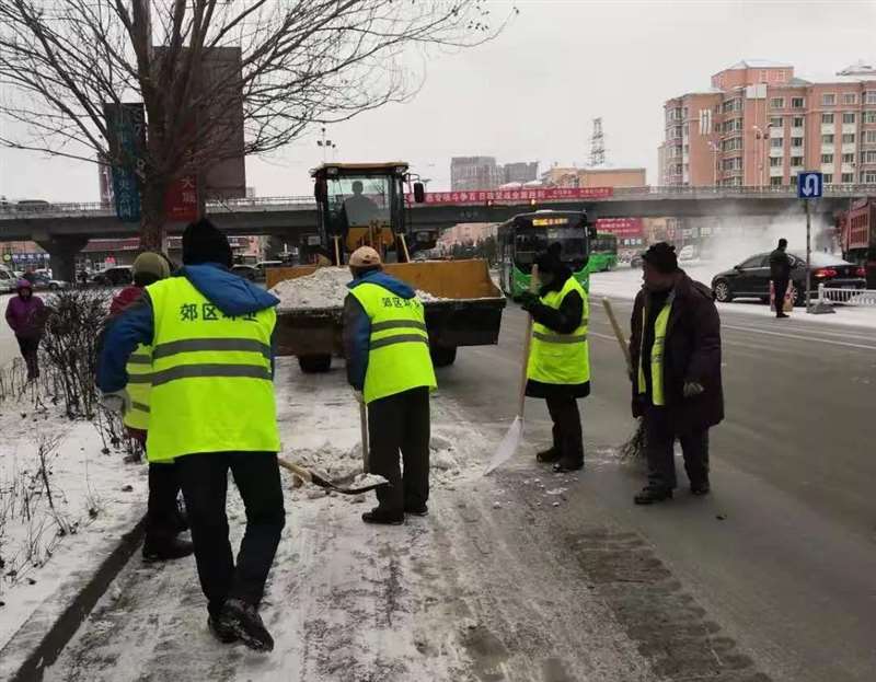 郊区住建局工作人员和一线环卫工人按照《郊区住建局2019年冬季清雪工作实施方案》要求组织开展清雪工作。郊区共出动清雪人员730余人次、车辆 90余台班,打通36条主次干道。