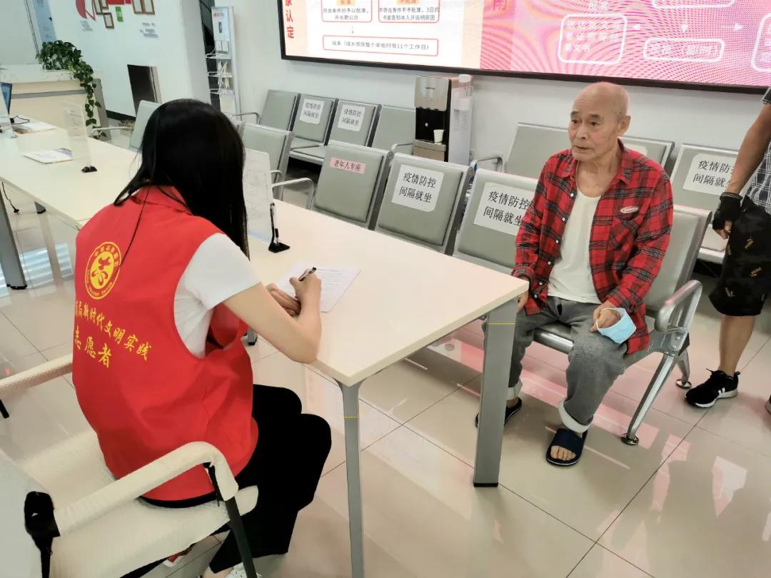 成立志愿者服务站,对本单位16名青年干部和通过多种方式招募的大学生、老干部志愿者开展志愿服务培训。志愿者们身穿红色马甲上岗,为办事群众提供咨询服务,引导他们到相应的窗口办理业务,纾解大厅聚集现象。引导办事群众在候等区等候,有序排队、文明办事。为有需要的群众提供填写表格、复印资料、电脑操作等服务。帮助前来办事的老年人、行动不便人士的特殊群体通过无障碍通道。