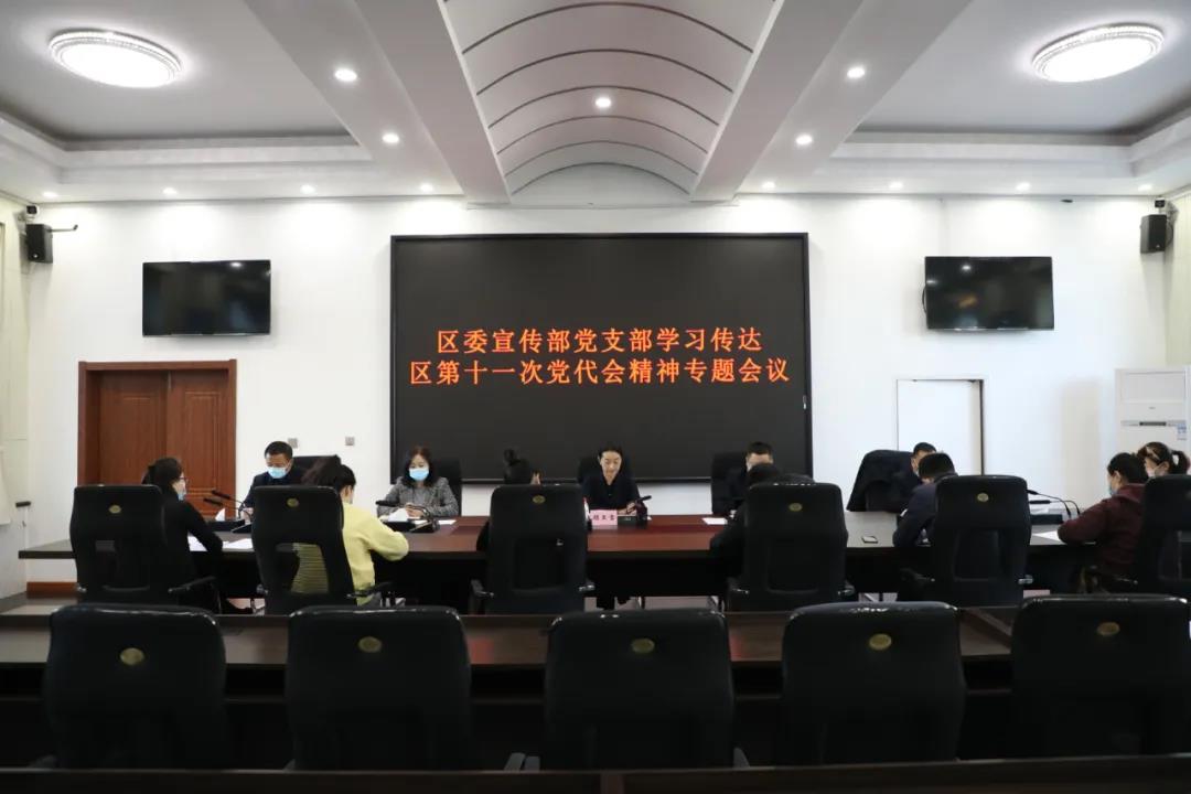 12月24日,区委宣传部党支部召开专题会议传达学习区第十一次党代会精神,区委常委、宣传部部长顾玉雪以普通党员身份参加学习并对下步工作进行了全面安排部署。