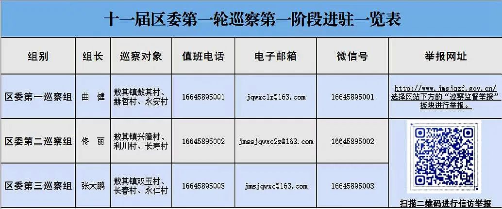 根据巡察工作有关规定,巡察期间,巡察办公室设在村委会,办公室外设有举报信箱,巡察组开通举报电话、电子信箱和二维码,巡察公告具体内容在新闻媒体公布。 |