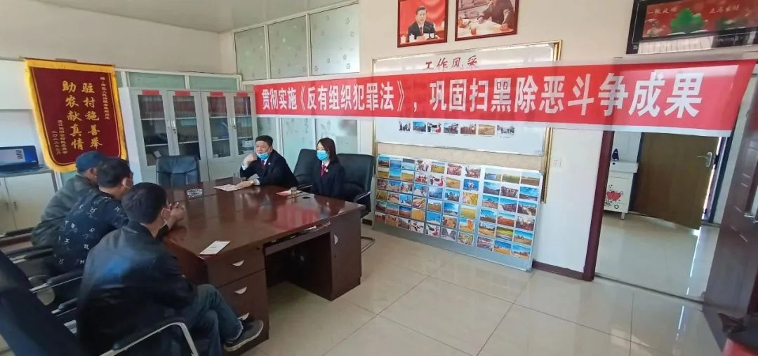 活动以座谈会的形式从依法从严惩治黑恶犯罪、深挖黑恶势力保护伞、严防黑恶势力深入基层、防止未成年人遭受侵害、防止黑恶势力死灰复燃、保障涉案单位及个人权益等《中华人民共和国反有组织犯罪法》六大亮点对望江镇四合村支委会成员进行普法宣讲。