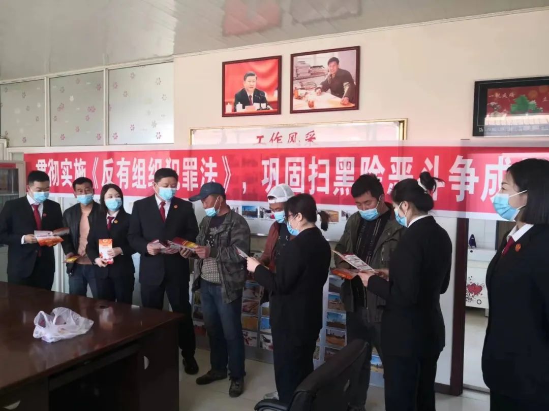 为深入推进扫黑除恶常态化开展,增强公民法律意识,近日,郊区人民法院刑事审判庭全体干警到望江镇四合村开展《中华人民共和国反有组织犯罪法》宣传活动。