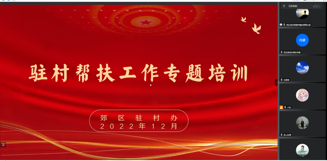 本次培训围绕建强村党组织、推进强村富民、提升治理水平、为民办事服务4项驻村工作职责任务设置5节课程,采取线上教学。培训班向全区各驻村工作队第一书记及队员传递党的二十大精神,全面落实习近平总书记关于乡村振兴重要指示精神,持续推进驻村工作顺利开展,坚持问题导向、目标导向、效果导向,以“交叉互检”问题台账为反面教材,对帮扶走访成效不大、帮扶手册建立不全、政策宣传不到位等方面的问题深入剖析,加快补齐短板弱项,扎实做好相关工作。强调第一书记和工作队员要进一步提升认识站位、明确工作职责、严明纪律要求,清楚“驻村为什么、到村干什么、在村怎么干”,全面提升驻村帮扶干部的综合素质和业务水平。全体驻村干部要聚焦找准帮扶“切入点”、抓住帮扶“关键点”、抓牢帮扶“着力点”、凸显帮扶“闪光点”,要强化防止返贫监测帮扶机制落实,坚决守住不发生规模性返贫的底线。要通过开展驻村工作总结会议、走访入户、组织文体活动等方式,总结出具有郊区特色的驻村工作经验,形成良好的干事创业氛围。
