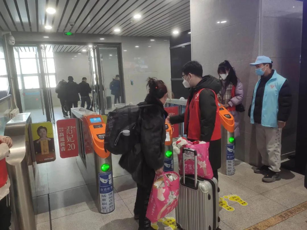团区委通过线上招募的方式招募返乡大学生、社会志愿者,共有十余名志愿者报名参与此次活动。青年志愿者经过培训后,为来往旅客提供交通指引、行李搬运、弱势群体帮扶、问询解答等便民志愿服务,帮助他们在春运期间顺利返乡、安全出行、温暖过节。“红马甲”们活跃在春运的各个枢纽,温暖旅客回家路。