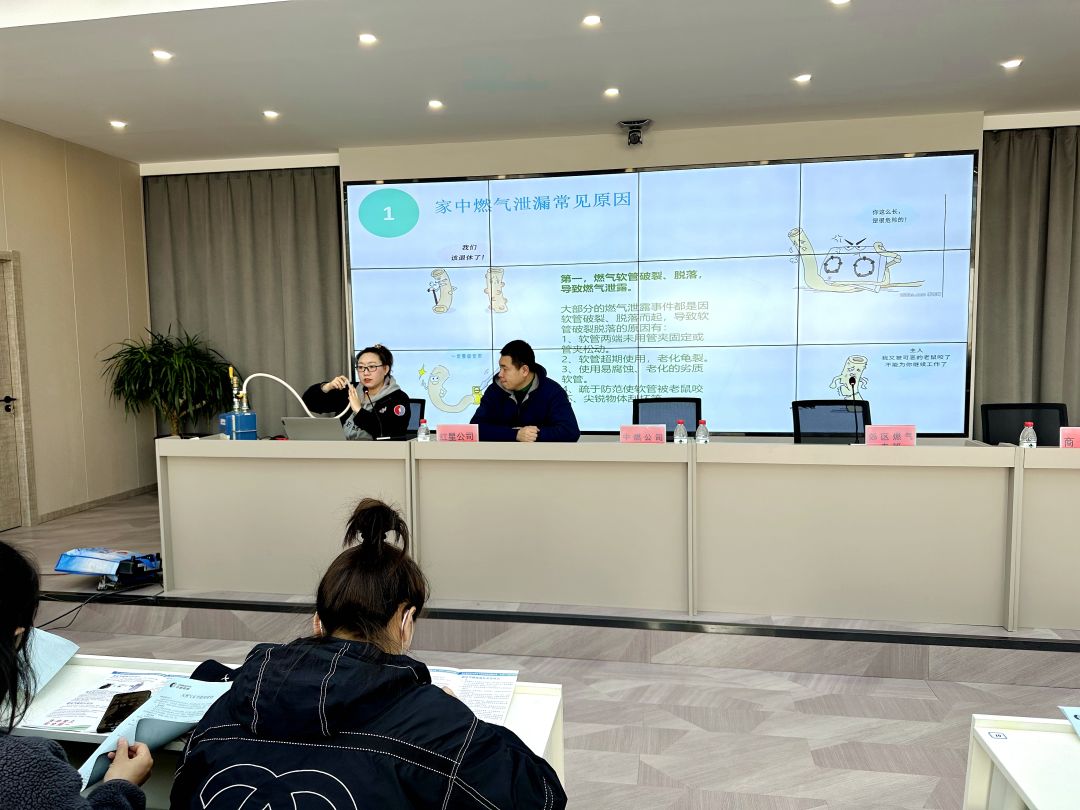 本次培训会邀请了佳木斯中燃城市燃气发展有限公司、佳木斯市红兴液化气配送服务有限公司工作人员前来授课。中燃公司工作人员对城镇燃气事故案例分析、法律法规、规范标准的基本要求、燃气设备器具燃气泄漏应急处置等进行讲解,并对如何开展居民、非居民用户的安全检查等四个方面进行授课。红星公司工作人员从液化气的运输、使用、储存和排查等多个环节,对液化气的安全使用进行了详细的讲解,为做好燃气安全行动提供制度保障。