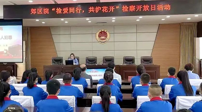 为强化未成年人司法保护,增进社会公众对未成年人检察工作的了解,凝聚各有关部门力量共同保护未成年人健康成长,近日,郊区人民检察院举办了“检爱同行,共护花开”未成年人保护主题检察开放日活动,邀请区教育局、郊区关心下一代工作委员会以及辖区内长青中学的师生代表,零距离接触检察工作,感受检察文化。