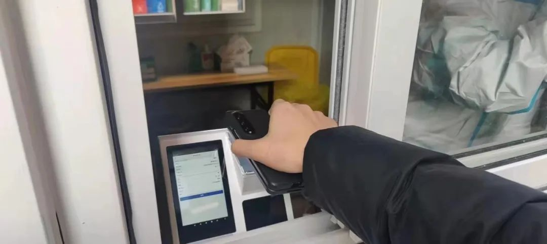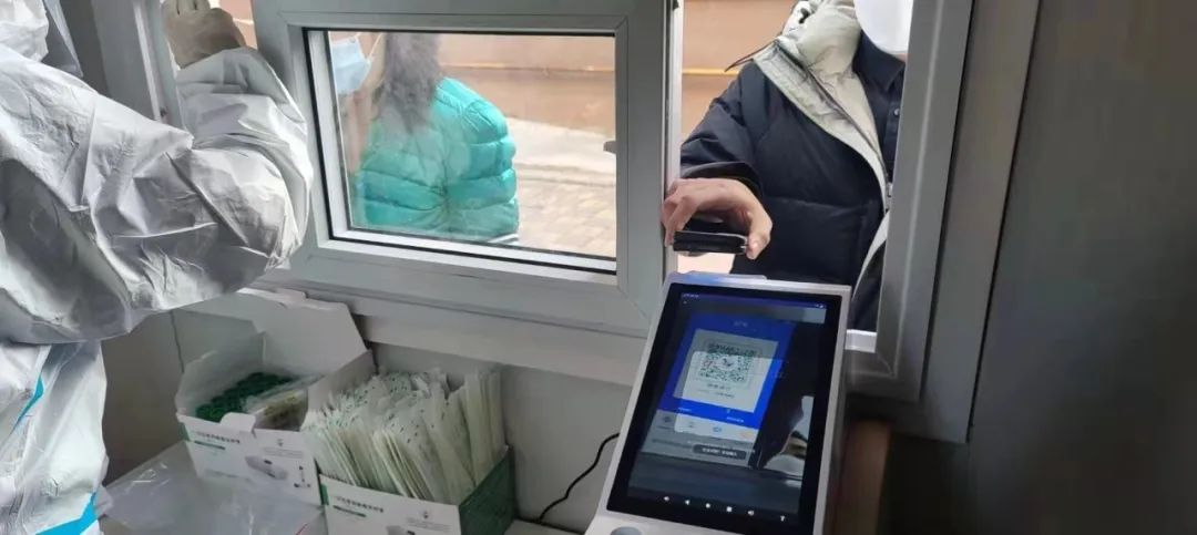 在红旗街道73个小区设固定试点采样台,参加核酸检测的居民和重点人群拿起手机中健康码或身份证,轻轻地放置于一体机上方进行扫描,设备提示扫码成功后,医务人员直接采集核酸,整个过程就几秒钟,减少居民与工作人员接触,既有效率又安全。