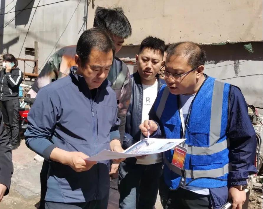 徐永刚现场察看老旧小区改造施工进展情况,详细了解违建拆除、管线改造、楼体设计及小区周边环境设施改善等具体工作措施,了解周边群众对老旧小区改造工作的认可度、满意度。