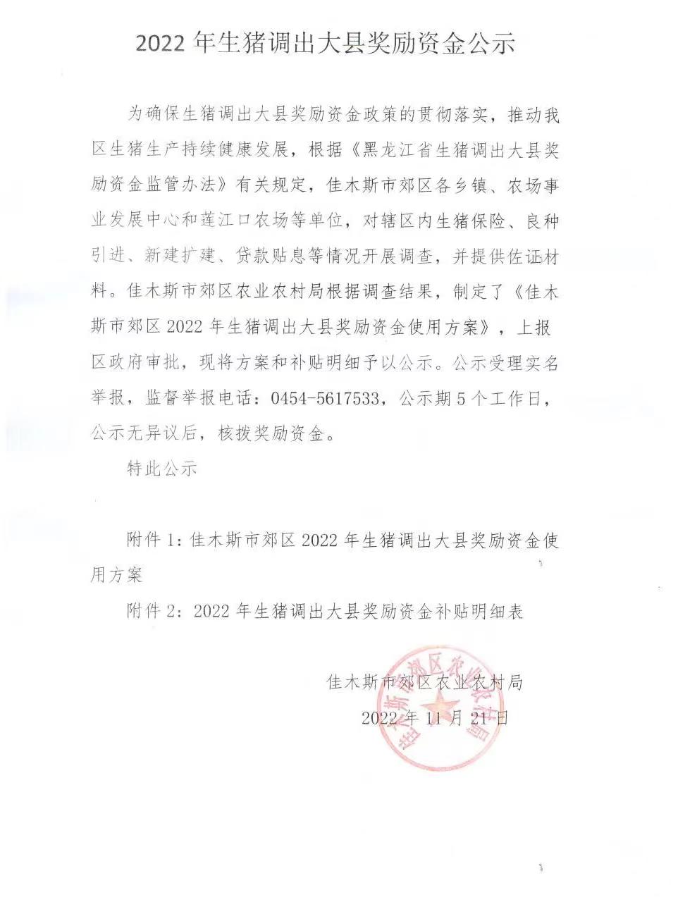 附件1.佳木斯市郊区2022年生猪调出大县奖励资金使用方案.doc
