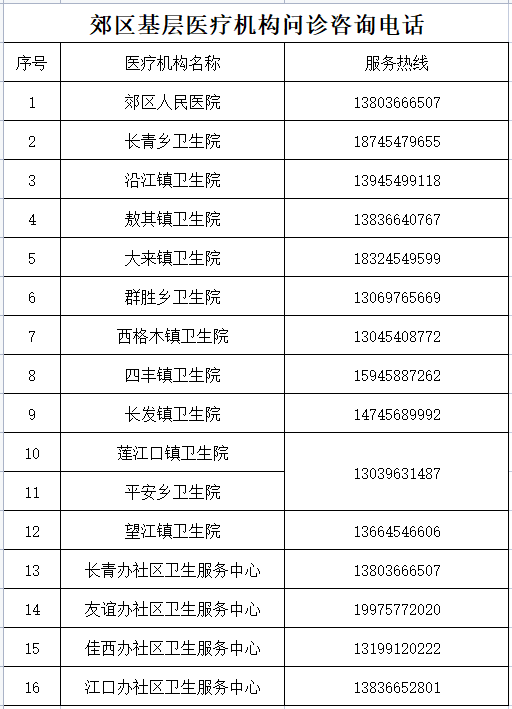 为了满足郊区居民朋友就医需求,发挥基层医疗卫生机构“网底”和家庭医生健康“守门人”作用,现设立郊区基层医疗机构问诊咨询电话,有需求的居民朋友可以拨打自己居住辖区内基层医疗机构问诊咨询电话,专业的医生团队将免费为居民提供健康咨询、用药指导等服务。