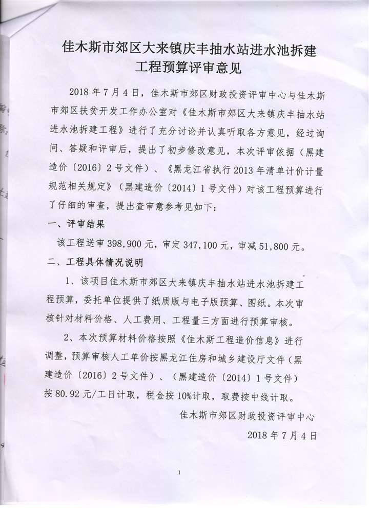 经大来镇庆丰村申请、村公示、大来镇政府呈报、区政府批复和区财政投资评审中心审定,该项目预算资金347,100元,现予以公告。