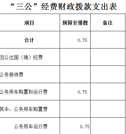该表反映本单位因公出国(境)经费、公务接待费及公务用车购置和运行费预算安排数。