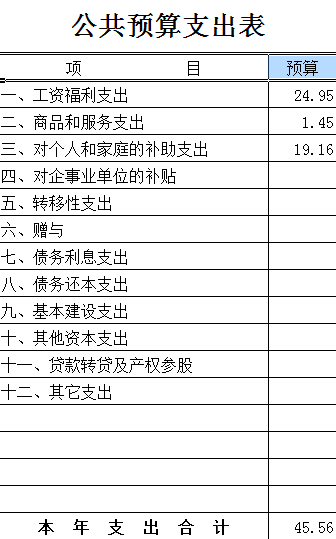 2、《公共预算支出表》