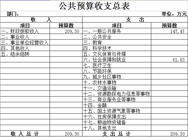 一、郊区人力资源和社会保障局主要职能 (一)贯彻执行国家、省、市关于人力资源和社会保障事业发展规划及相关法律、法规、规章和政策。 (二)贯彻执行国家、省、市人力资源流动政策,制定并组织实施全区人力资源市场发展规划。 (三)负责促进就业工作,制定统筹城乡的就业发展规划,建立和完善公共就业服务体系,组织落实就业援助、职业介绍、职业培训等项工作。 (四)贯彻执行国家、省、市机关事业单位养老保险政策、法规、实施细则。 (五)执行国家、省、市机关事业单位人员工资收入分配制度改革实施细则,建立机关企事业单位人员工资正常增长和支付保障机制,编制全区机关事业单位人员计划和工资计划。 (六)参与人才管理工作,制定专业技术人员管理和继续教育规划,牵头推进深化职称制度改革工作。 (七)会同有关部门落实军队转业干部安置政策和安置计划。 (八)根据干部管理权限,负责行政机关公务员综合管理,会同有关部门组织落实国家荣誉制度,组织实施政府奖励制度。 (九)会同有关部门制定农民工工作综合性规划,加强农民工相关政策的落实,协调解决重点难点问题,维护农民工合法权益。 (十)统筹实施劳动、人事争议调解仲裁制度,完善劳动关系协调机制。 (十一)受理劳动、人事信访事项,会同有关部门协调处理有关劳动、人事方面的重大信访事件或突发事件。 (十二) 承办区政府交办的其他事项。 二、 2014年郊区人力资源和社会保障局部门预算总体情况 预算总收入209.3万元,其中:财政拨款收入209.3万元。预算总支出209.3万元,其中:一般公共服务支出147.47万元,社会保障和就业支出61.83万元。(工资福利支出135.5万元,商品和服务支出4.7万元,对个人和家庭补助支出69.1万元)。 附件: 1、《公共预算收支总表》 2、《公共预算支出表》 3、《三公经费财政拨款支表》