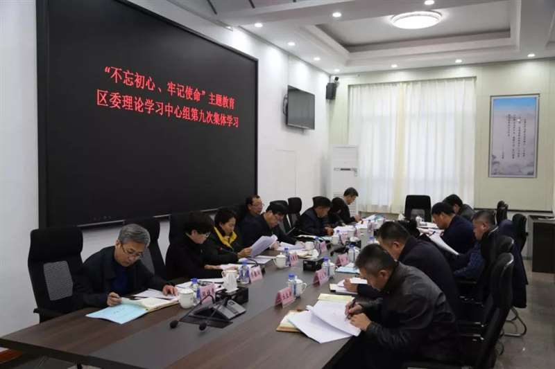 11月8日,郊区 “不忘初心、牢记使命”主题教育区委理论中心组举行第九次集体学习,集中学习贯彻党的十九届四中全会精神,区委书记冯甲伟主持并讲话,市第三巡回指导组有关同志到会指导。