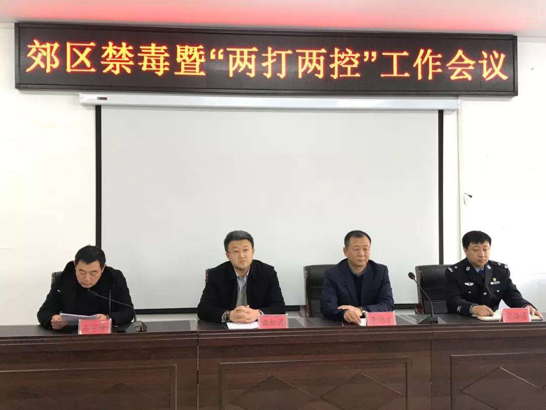 11月14日,郊区召开禁毒工作“两打两控”推进会,区委常委、禁毒委主任、政法委书记曲松涛做工作部署,区禁毒委常务副主任、公安分局党委书记、局长李德才通报全区禁毒工作情况,区禁毒委副主任、区政府党组成员、政府办主任石宇峰主持会议。