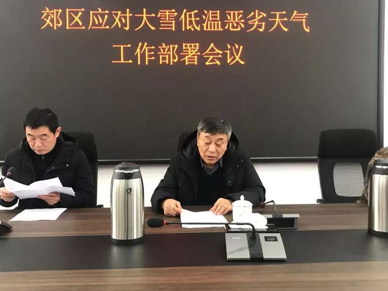 12月29日上午,郊区召开应对大雪低温恶劣天气工作部署会议。会议就应对大雪低温恶劣天气、确保人民群众生命财产安全及正常生产生活做出安排部署。会议由区委常委、政府副区长史焕来主持,区委常委、武装部部长李勇,政府党组成员石宇峰出席会议并讲话,各乡镇人民政府、四个街道办、区直有关部门、驻区有关单位主要领导参加会议。