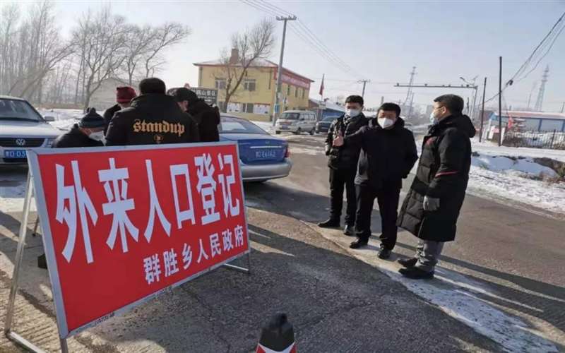 群胜乡组织乡村干部逐户排查外来人员并登记造册,要求返乡人员自行在家隔离,安排医护人员定期对其进行体温检测,同时在室外粘贴告知书,谢绝来人来访,并加强对流动人员的管控,进一步降低疫情传入风险。各村屯卡口配备了对讲机,便于岗与岗、岗与村的沟通,并设立蓝色“新型冠状病毒肺炎检查点”和红色“外来人口登记处”醒目警示板,提醒过往车辆配合检查。