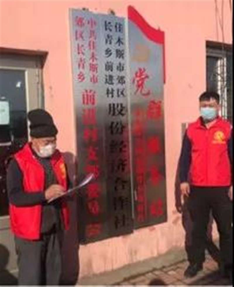 身穿红色马甲,个头不高的志愿者张喜江今年75岁,是前进村村民。疫情发生的第一时间,他就主动报名参加防控工作。考虑到张喜江年事已高,村委会的工作人员都劝他在家好好休息,他却说,虽然我年纪大了,但我能干点力所能及的事,为咱前进村的防疫工作尽一份力量。