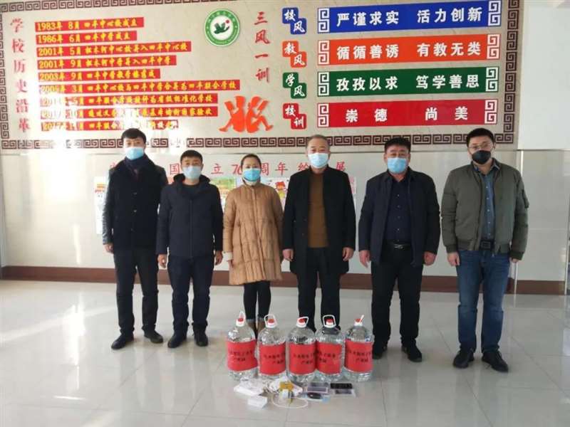 3月11日,区人大常委会副主任、区工商联主席刘义昌到四丰联校为学生捐赠全网通4G手机和消杀用酒精,对学校开展线上教学各项工作给予肯定,同时了解学校防疫期间日常工作情况。区工商联、电商园区商会相关负责同志参加活动。