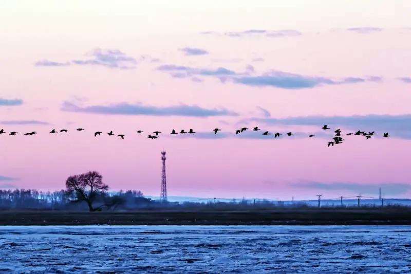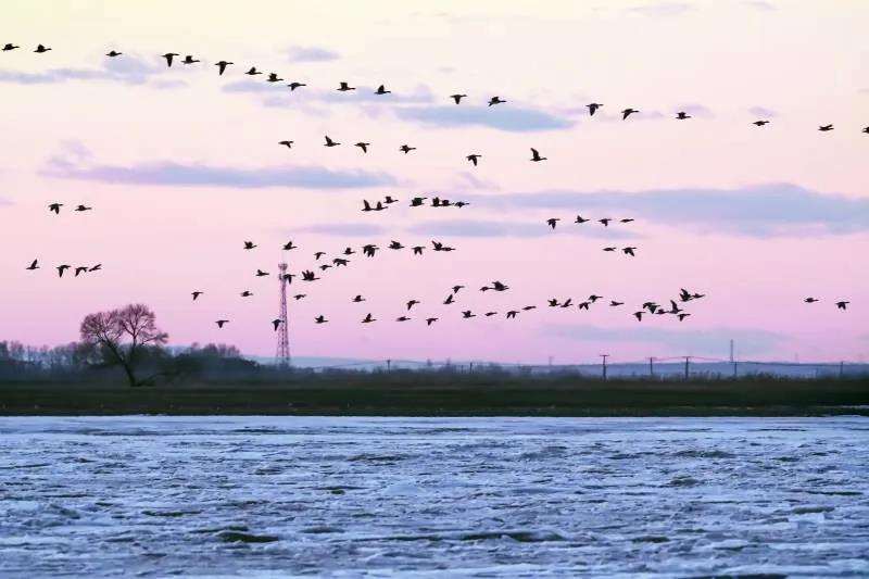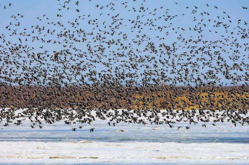 今春的第一波迁徙雁群,