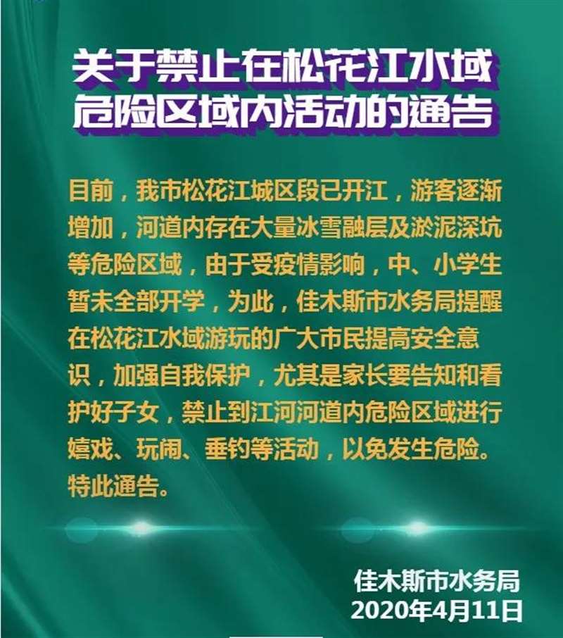 关于禁止在松花江水域危险区域内活动的通告
