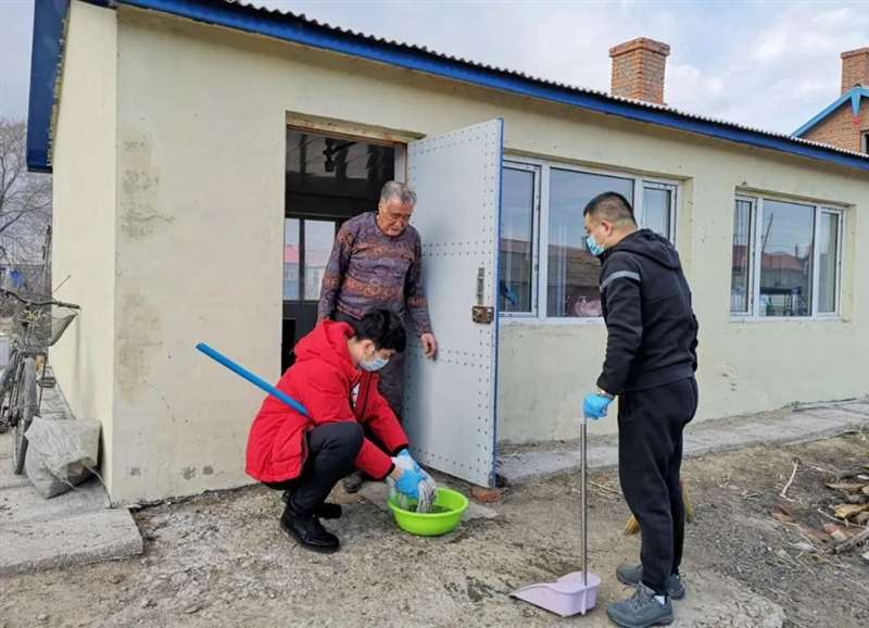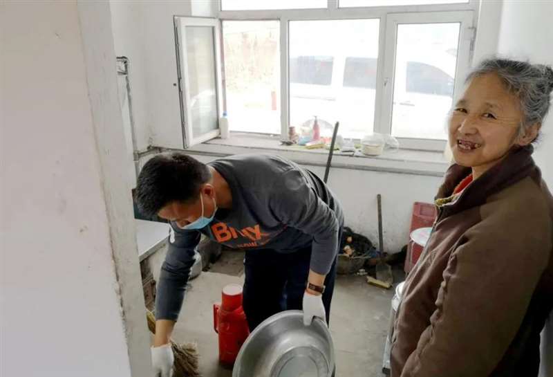 全体同志不怕脏累,认真清理地面、打扫屋内灰尘、整理凌乱物品、进行室内消毒。有的同志为帮扶户带来洗衣液、消毒水,有的同志为帮扶户带来被褥,有的同志为帮扶户购置崭新的炕席。这些青年人充满爱心,践行使命,用行动标注奋斗和担当,用汗水和真情换来帮扶户的满意笑容。
