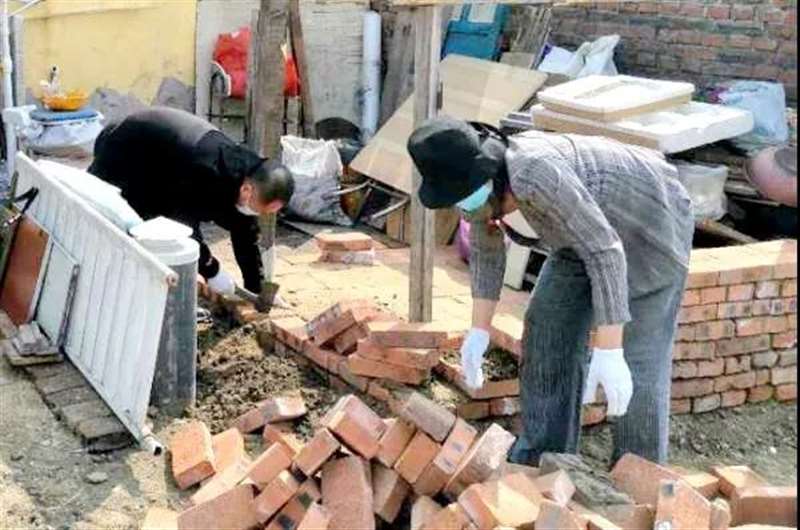 近日,沿江中心校扶贫干部在入户走访过程中,发现黑通村贫困户崔洪儒家存在入户门前因施工导致残土堆积,储物棚栏拆除,取暖煤等杂物无处堆放等问题。经现场研究,沿江中心校决定立即为贫困户建棚栏。6名扶贫干部各显身手、各尽所能,运砖、运粘土、砌墙,棚栏“微工程”说干就干。经过默契配合、分工合作,当日就完成了这项工作。