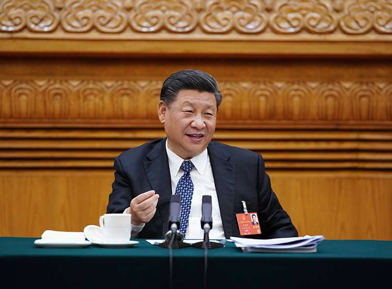 5月24日,中共中央总书记、国家主席、中央军委主席习近平参加十三届全国人大三次会议湖北代表团的审议。新华社记者 李学仁 摄