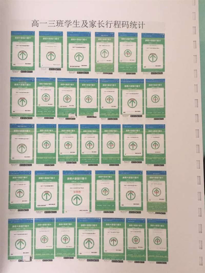 5月24日,松北高中要求全体返校学生和共同居住人提交了最新版的大数据行程卡、龙江健康码和承诺书,班主任进行初审,学校政教处复核,详细掌握学生及共同居住人14天内的活动轨迹,做到全面掌控。