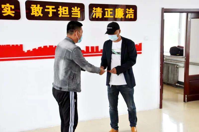 东格木村和靠山村的两位贫困户由村书记代领慰问金后交给贫困户本人。