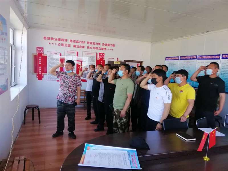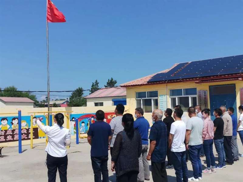 【西格木镇党委】组织民胜村党员在党旗下重温入党誓词、唱国歌。