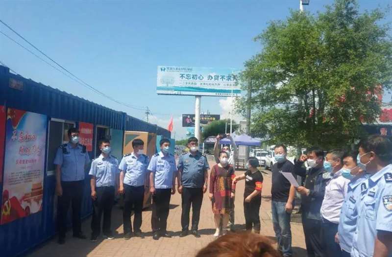 在宣誓现场,市交警支队、市特警支队、市交通综合执法局、区农机局、交通局、长发镇、望江卫生院的党员干部一起高举右拳,面向鲜艳的党旗重温入党誓词,那铿锵有力的誓言,更加坚定了抗击疫情必胜的信心以及对中国共产党的无限忠诚。