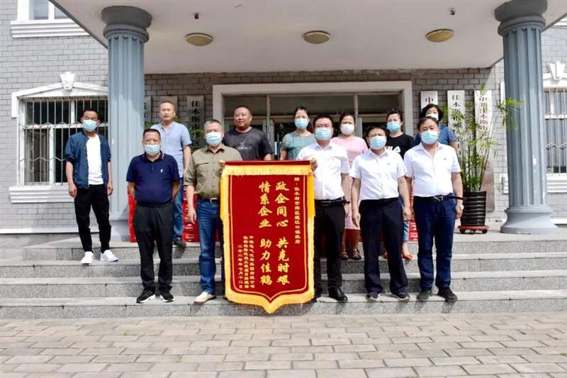 7月12日,中铁电气化局集团佳鹤项目部向佳木斯市郊区莲江口镇政府送去锦旗和慰问品。