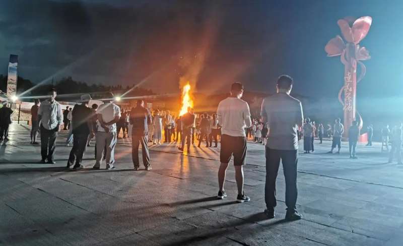 欢腾篝火舞娇娥,劲鼓狂铃萨满歌。篝火晚会在夜幕中精彩启动,现场演员和游客们围绕着篝火载歌载舞,游客们看焰火、玩篝火、唱起歌、跳起舞,整个花海升腾起欢乐的海洋。