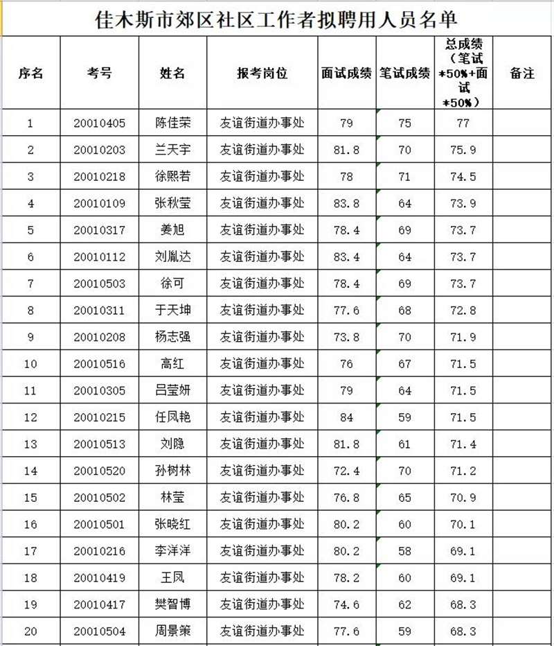 附件:《佳木斯市郊区招聘社区工作者拟聘用人员名单》