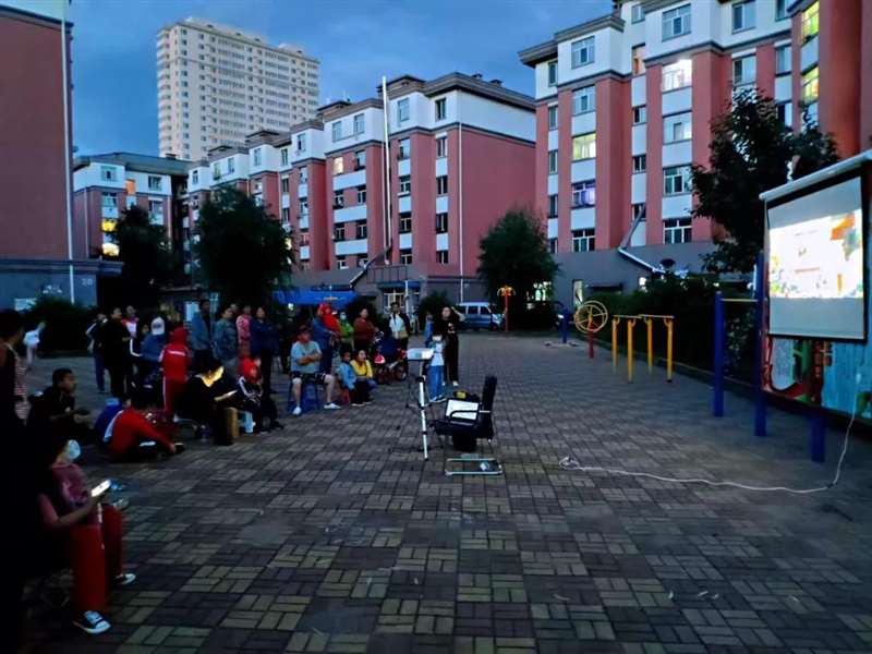 在各居民小区,茶余饭后,居民群众走出家门,重温黑白影片《地道战》《地雷战》,观看数字影片《建国大业》《建党大业》《中国机长》《捍战》等。观影过程中,大家群情激奋,仿佛置身于战火纷飞的年代,亲身经历惊心动魄的革命历程,广大社区居民反响强烈,一致好评。观影后,居民纷纷表示,和平生活来之不易,要继承和发扬英勇战斗、不惧牺牲的爱国精神,为实现中华民族伟大复兴的中国梦、强国梦贡献力量。